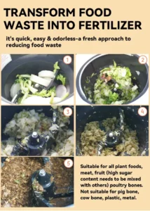 - Convenien food recycler that reduces food waste to 96%!