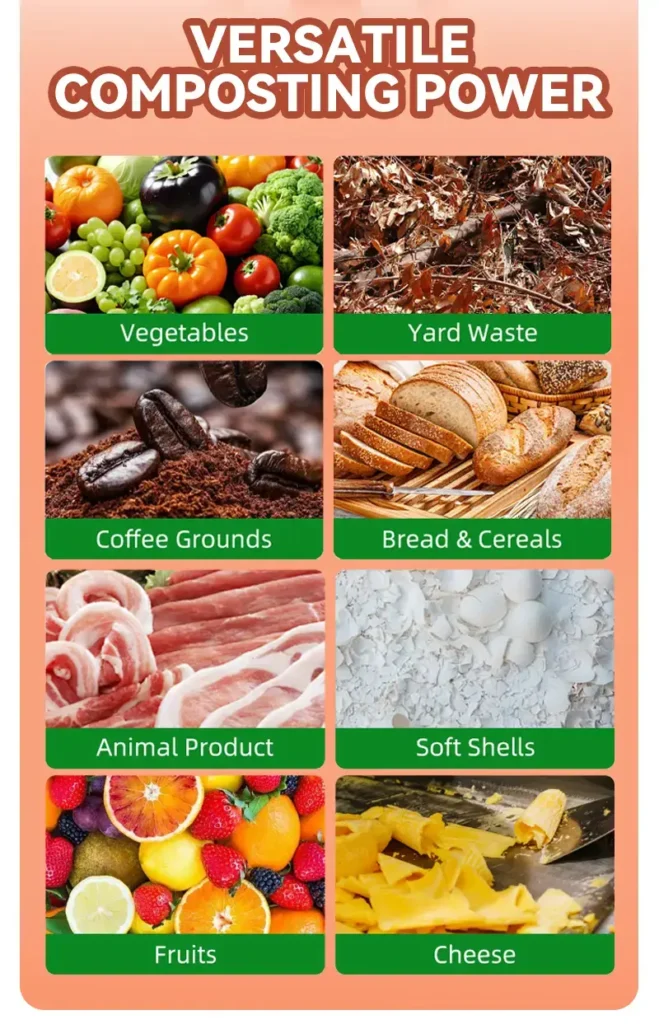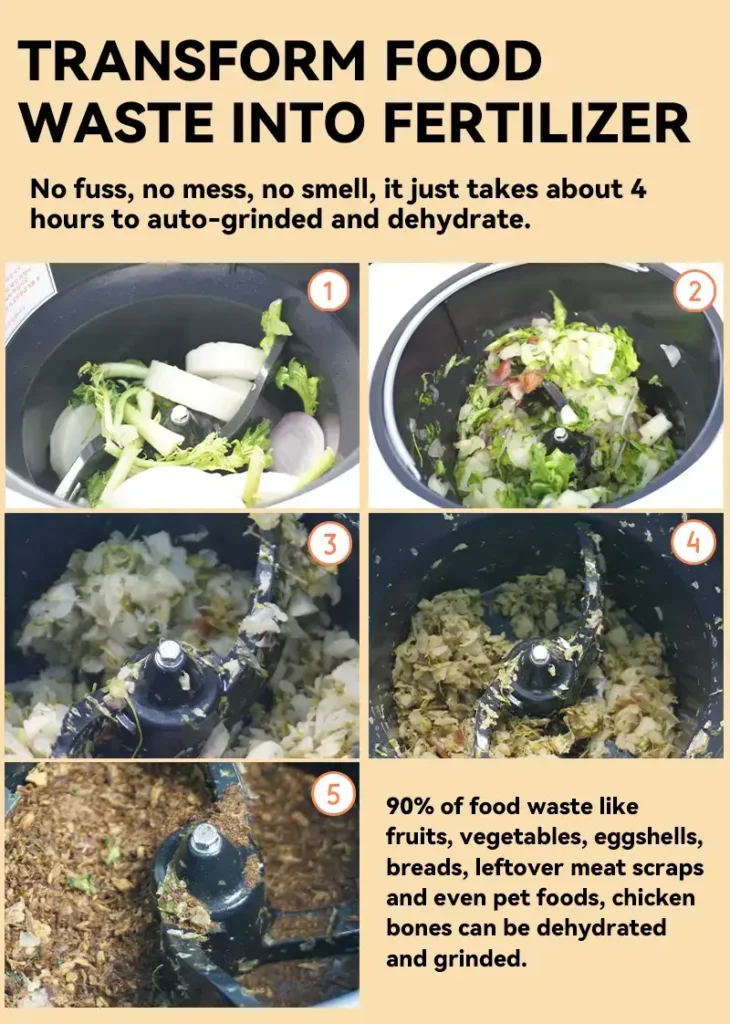 Odorless & Quiet: eliminates food scrap odors by carbon filter lid for indoor use