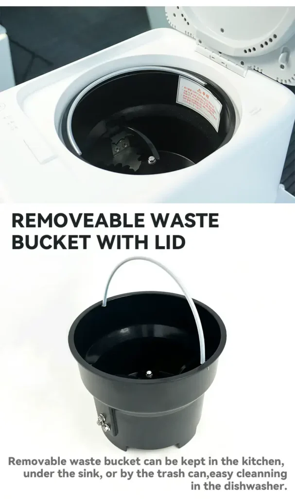 Removable waste bucket can be kept in the kitchen, under the sink, or by the trash can, easy cleanning in the dishwasher.